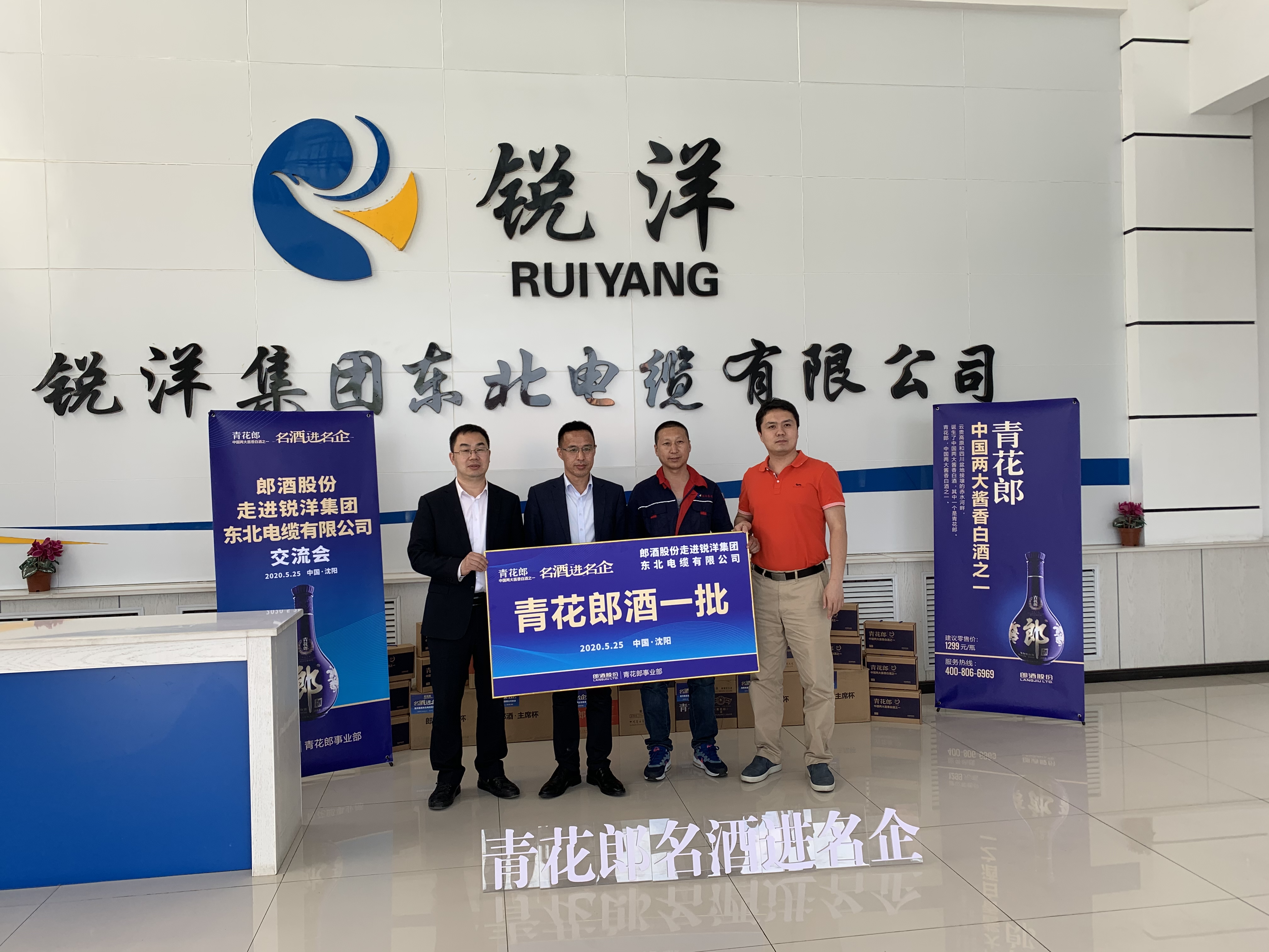 攜手前行,聯贏共盛,為加強企業間的交流,增進企業友好關系,促進企業的合作發展,2020年5月25日,名酒進名企——郎酒股份有限公司走進銳洋集團交流會在銳洋集團東北電纜有限公司隆重舉行,四川郎酒股份有限公司青花郎遼寧辦事處總經理李勇、沈陽青花郎一級經銷商沈陽寶佑商貿有限公司總經理王昊、四川古藺郎酒銷售有限公司-沈陽二部城市經理毛剛等領導到銳洋集團交流訪問。