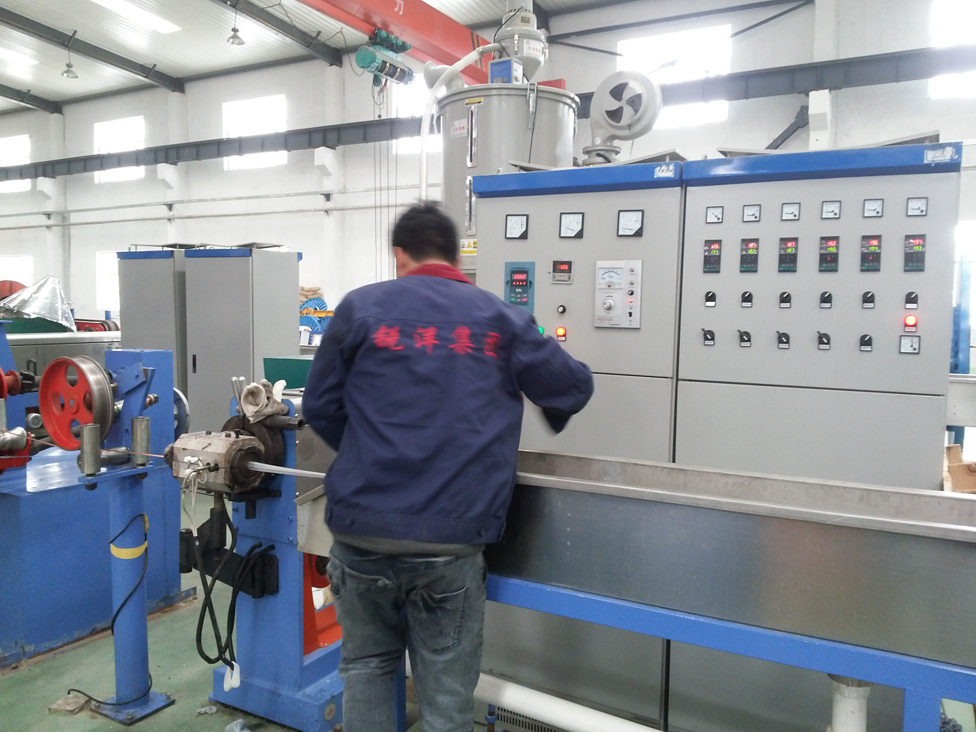 電線電纜的塑料擠出是采用連續(xù)擠壓方式進(jìn)行的。通過(guò)擠塑機(jī)用螺桿擠壓,將塑料包到導(dǎo)體或線芯上,構(gòu)成電線電纜的絕緣層、屏蔽層、內(nèi)護(hù)層、和外護(hù)套。